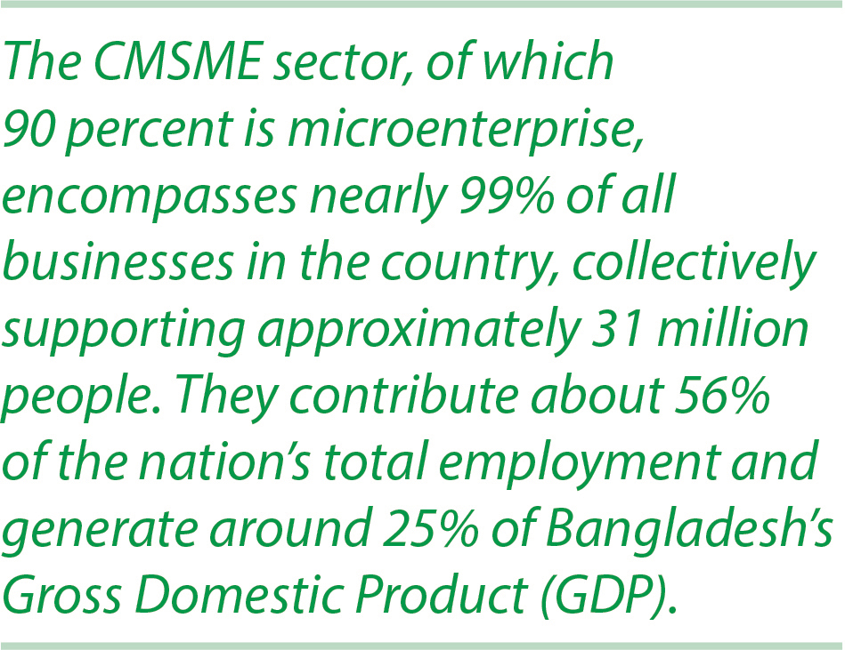 The Cottage, Micro, Small and Medium Enterprises (CMSME) sector comprises an estimated 10.70 million ventures scattered all over Bangladesh. It is the true backbone and, at the same time, the unsung growth engine of the economy. It is a significant generator of employment, and fosters women’s empowerment, social development, and nationwide economic resilience.