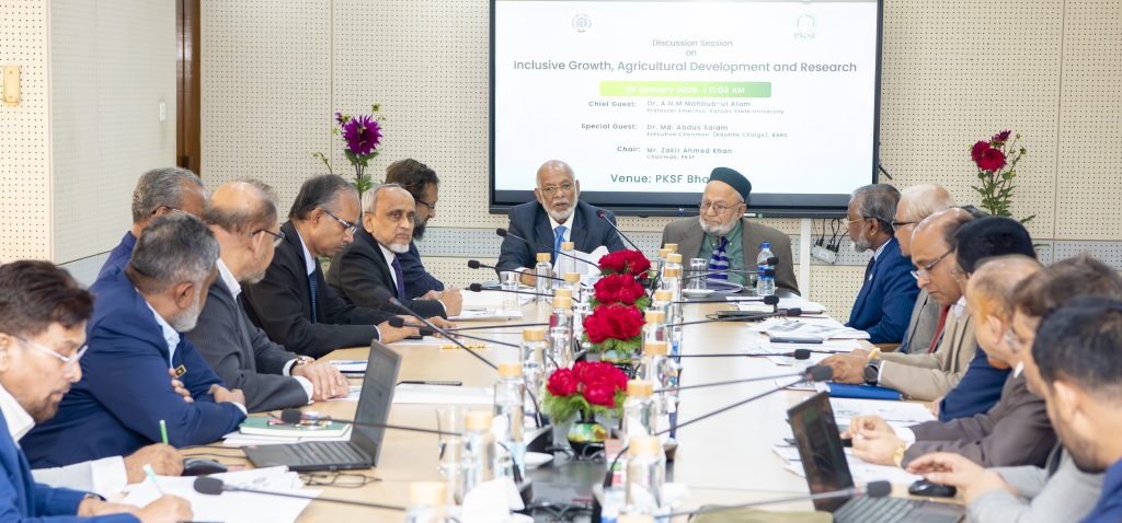 Among others, former BARC Executive Chairman Dr Wais Kabir and Executive Director of WAVE Foundation Mohsin Ali also spoke at the discussion. A presentation on PKSF’s agricultural development interventions was delivered, and a special documentary was screened. Senior officials of PKSF and BARC, as well as chief executives of PKSF’s Partner Organizations, were present at the event.