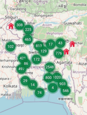 Sylhet, Habiganj, Sunamganj and Moulvibazar