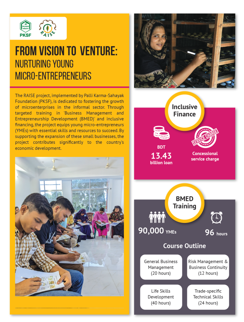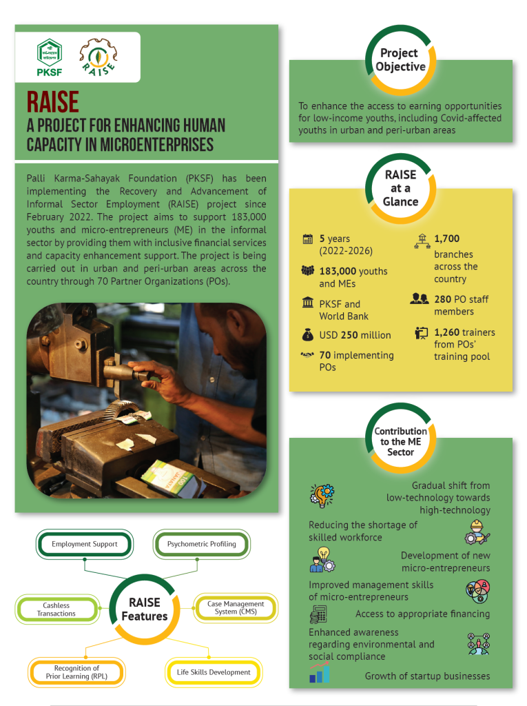 PKSF’s activities have always been demand-driven. Hence, the nature of its interventions constantly evolves with the changing needs of people. In order to ensure services that are out of the purviews of its programs, PKSF takes up tailor-made projects with specific objectives. Various development partners co-finance such projects that usually have a specific duration.